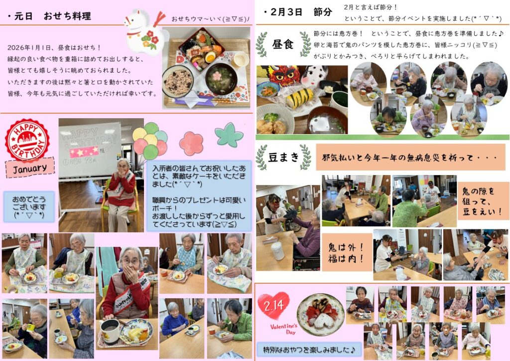 1月:おせち料理、お誕生日会